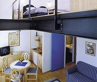 Во-вторых, в гостинице есть не только комфортабельные стандартные номера, но и двухэтажные номера. (Всего в гостинице 155 номеров и апартаментов, из них - 46 двухуровневых номеров и люксов.) Средняя площадь двухуровневого номера - 45 кв. метров. На первом этаже располагается прихожая, ванная комната, гостиная и кухня, на втором - спальня.